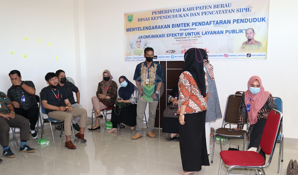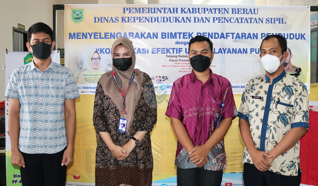 Bimtek yang mengusung tema "Komunikasi Efektif Untuk Layanan Publik"tersebut menghadirkan, Maria Yosephi S.Pd.I dari Publik Speaking School sebagai narasumber dan dihadiri Kepala Disdukcapil Berau, David Pamuji beserta jajaran Kabid dan Kasi Disdukcapil Berau
