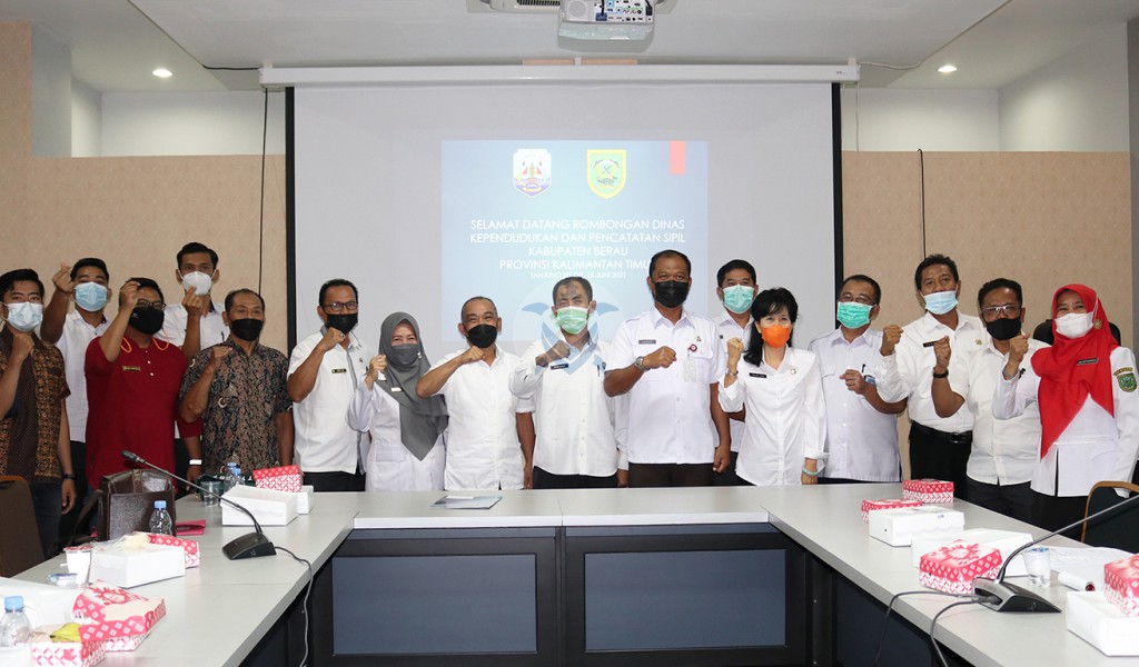 Rabu 16 Juni 2021 - Bertempat diruang rapat Gedung Gabungan Beberapa Dinas Provinsi Kalimantan Utara, Rombongan dari Dinas Kependudukan dan Pencatatan Sipil Kabupaten Berau disambut oleh jajaran pejabat Dinas Kependudukan Dan Pencatatan Sipil Provinsi Kalimantan Utara