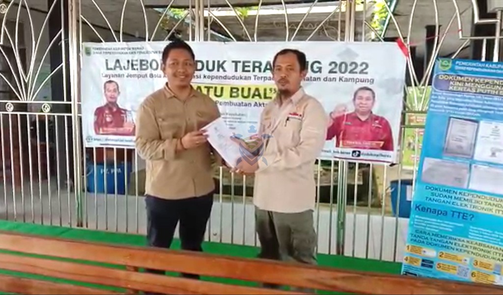 Berau – Selasa, 2 Agustus 2022 Dinas Kependudukan dan Pencatatan Sipil Kabupaten Berau melalui kegiatan Layanan Jemput Bola Administrasi Kependudukan Bersama Tuntaskan Pembuatan Akta Kelahiran (LAJEBOL ANDUK TERAPUNG BATU BUAL) Bidang Catatan Sipil melakukan kegiatan penyerahan 85 kutipan akta kelahiran anak dalam rangka percepatan kepemilikan di Kampung Labanan Makmur Kecamatan Teluk bayur. Dokumen akta kelahiran tersebut diserahkan langsung oleh Kepala Dinas disdukcapil Berau, David Pamuji.