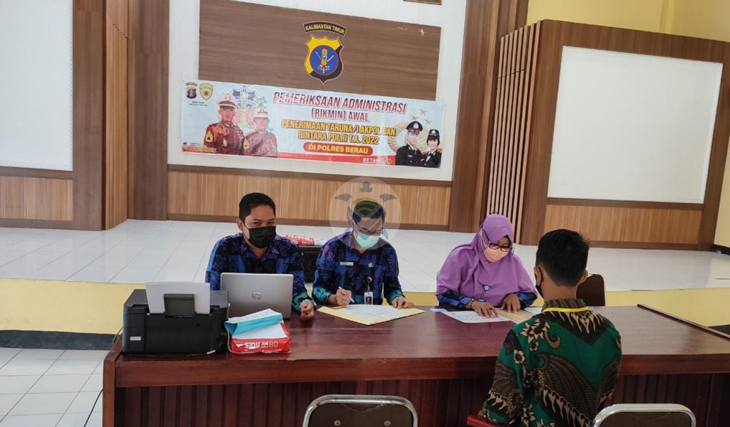 19 April 2022 - Bertempat di Aula POLRES BERAU, Disdukcapil Berau turun memberikan bantuan pemeriksaan keabsyahan dokumen kependudukan berkas administrasi awal penerimaan Taruna/i dan Bintara Polri TA.2022 Pabanrim Polres