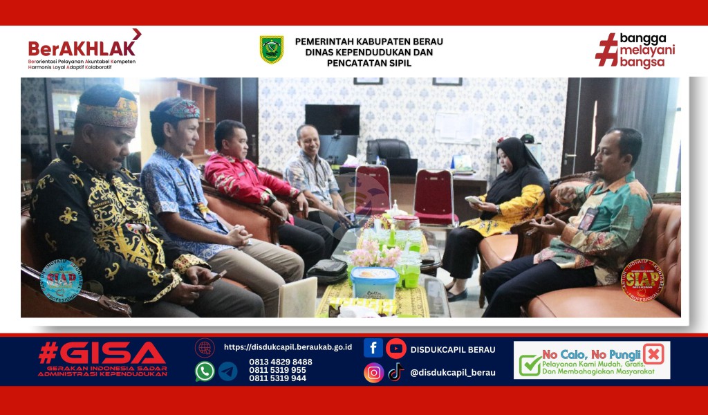 Tanjung Redeb - Dinas Kependudukan dan Pencatatan Sipil (Disdukcapil) Kabupaten Bulungan melakukan kunjungan ke Kantor Disdukcapil Berau pada Kamis, 3 Juli 2025. Kunjungan ini bertujuan untuk melaksanakan konsultasi dan koordinasi terkait pencatatan perkawinan melalui perjanjian kerjasama dengan pemuka agama.