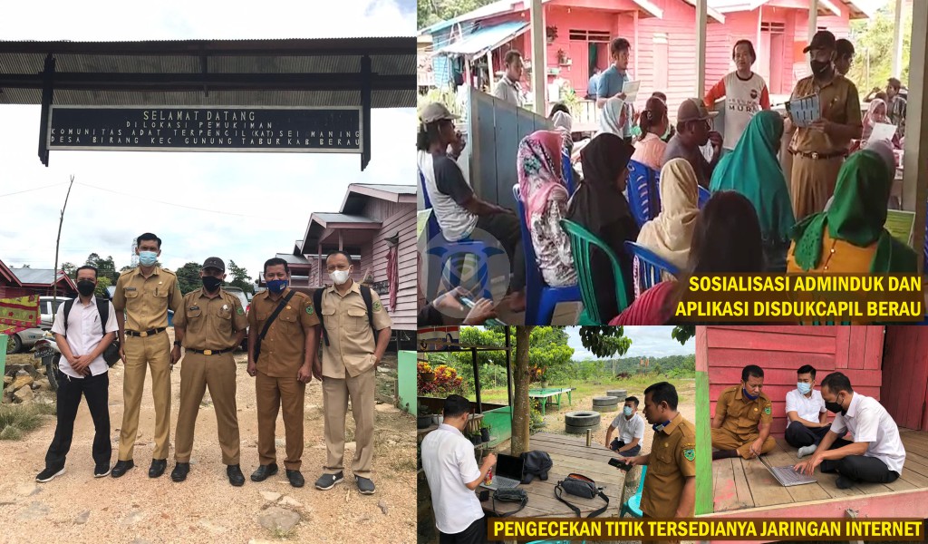 Selasa, 07 April 2021 - TRC PERKASA (Tim Reaksi Cepat Penuh Rasa Kasih Sayang) Disdukcapil Berau bekerjasama dengan Dinas Sosial, Kepala Kampung Birang melakukan pendataan dan pelayanan dokumen kependudukan kepada warga rentan adminduk di Pemukiman Komunitas Adat Terpencil Sei Maning Kampung Birang Kec.Gunung Tabur Kabupaten Berau.