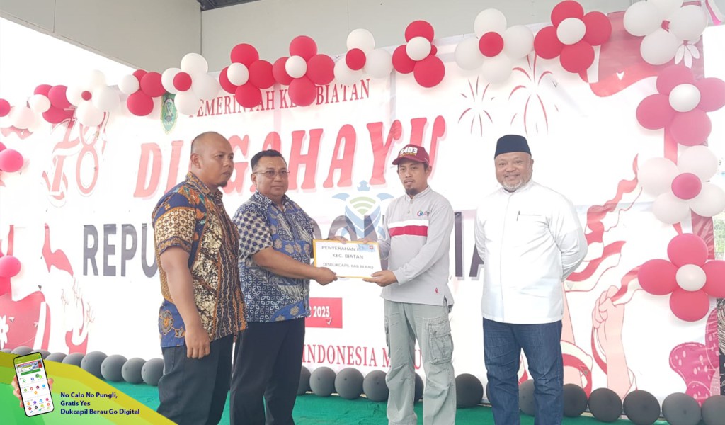 Dalam momen ini juga Disdukcapil Berau menyerahkan secara simbolis menyerahkan KTP el "SIAK OTW KECAMATAN" kepada Bapak Ali Syahbanan Selaku camat Biatan dan di saksikan langsung oleh wakil bupati Berau H. Gamalis.