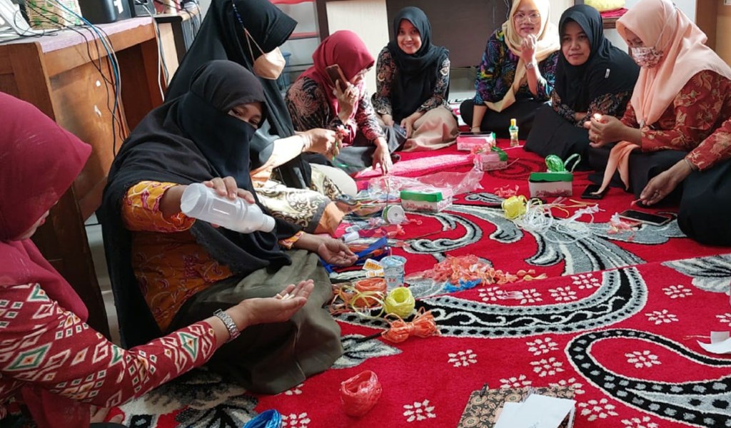 Ibu ketua DWP memimpin secara langsung kegiatan membuat kerajinan tangan dari tali raffia. Hal ini dilakukan agar DWP unit disdukcapil dapat semakin kompak dan bertambah wawasan mengenai kerajinan tangan.