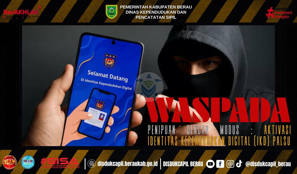 Tanjung Redeb, Dinas Kependudukan dan Pencatatan Sipil (Disdukcapil) Kabupaten Berau mengimbau masyarakat untuk mewaspadai penipuan dengan modus aktivasi Identitas Kependudukan Digital (IKD). Penipuan ini dilakukan dengan mengirimkan pesan atau pemberitahuan melalui WhatsApp yang mengatasnamakan Disdukcapil, kemudian meminta data pribadi warga untuk "proses aktivasi".