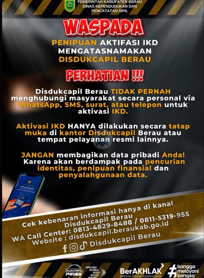 #WaspadaPenipuan #IKD #DisdukcapilBerau